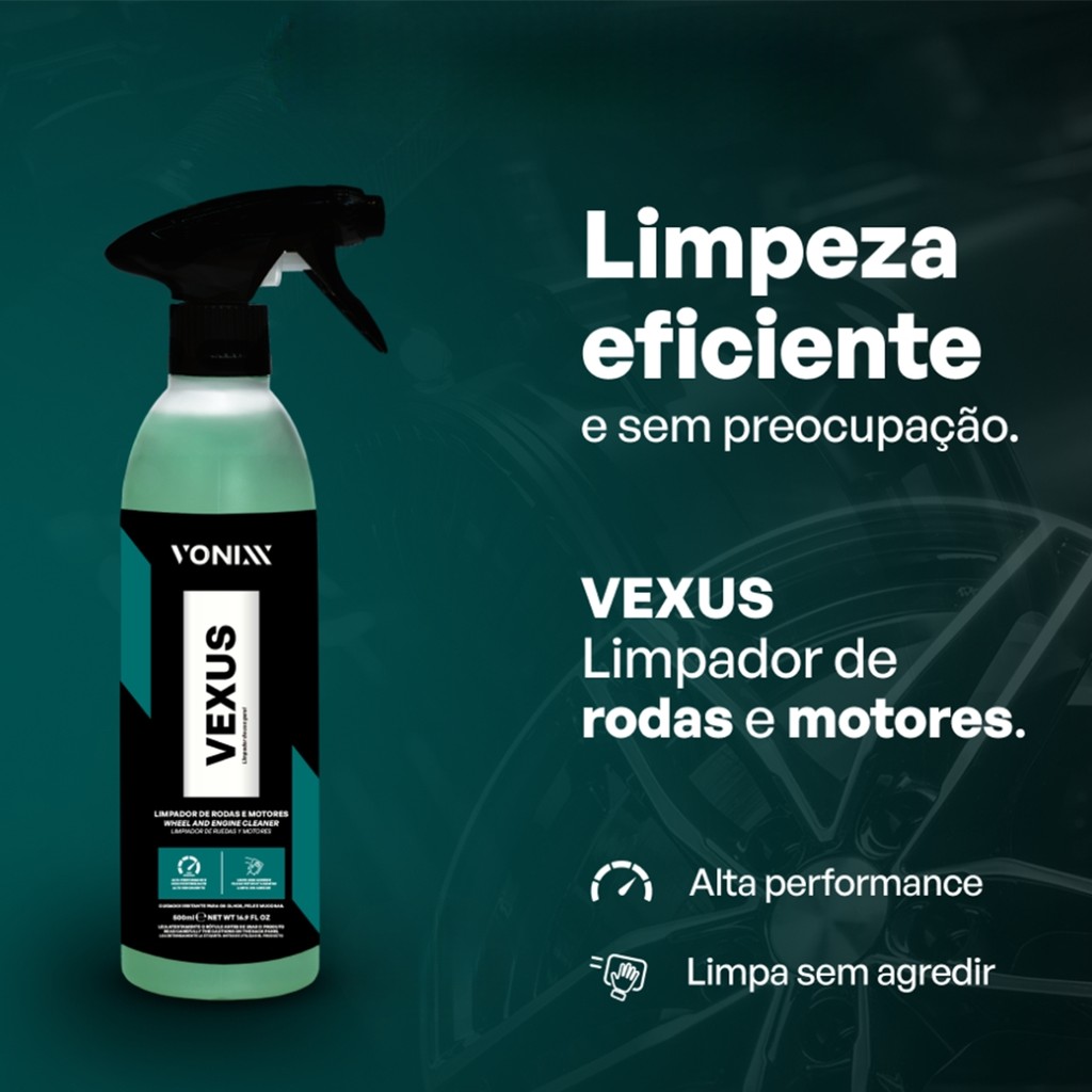 Bem-vindo(a) à AT4U - Loja Oficial VEXUS VONIXX - SINTRA FAST VONIXX - DELET VONIXX Kit Essencial de Limpeza Automotiva - com Vexus Vonixx, Sintra Fast Vonixx e Delet Vonixx, você tem tudo para realizar limpeza completa, remoção de sujeiras pesadas e proteção das superfícies do seu carro. Perfeito para quem busca praticidade, eficiência e acabamento profissional em cada detalhe. VEXUS VONIXX 500ML – LIMPEZA TÉCNICA E SEGURA PARA RODAS E MOTORES O Vexus da Vonixx é um limpador técnico de alta performance, desenvolvido para remoção eficaz de sujeiras pesadasem áreas delicadas do veículo, como rodas, motores, caixas de roda e para-lamas. Sua fórmula balanceada limpa com segurança, sem agredir superfícies sensíveis, garantindo um acabamento limpo e profissional. Com pH neutro e pronta para uso, o Vexus combina eficiência e praticidade, sendo ideal para uso profissional ou doméstico. PRINCIPAIS BENEFÍCIOS - Remove sujeiras minerais pesadas – Pó de freio, calcário, oxidação leve e resíduos metálicos - Seguro para superfícies metálicas e plásticas – Limpa sem danificar verniz ou acabamento - Pronto para uso – Aplicação prática e eficiente, sem necessidade de diluição - Facilita a limpeza de motores – Rompe sujeiras e agiliza o enxágue - Excelente rendimento – Uso controlado e aplicação uniforme MODO DE USAR 1 Pulverize pequena quantidade de produto sobre a superfície fria. 2 Com escova ou pincel, esfregue até notar o desprendimento da sujeira. 3 Enxágue completamente com jato de água e seque em seguida. ESPECIFICAÇÕES Marca: Vonixx Volume: 500ml Modelo: VEXUS VONIXX Superfícies: Rodas metálicas, cromadas ou pintadas; motores; blocos metálicos e partes sensíveis Funcionalidade: Limpeza pesada, desincrustante, seguro para uso em superfícies delicadas SINTRA FAST VONIXX 500ML – LIMPEZA PESADA COM AÇÃO BACTERICIDA! O Sintra Fast Vonixx é um limpador multiuso com ação bactericida, desenvolvido para realizar limpeza pesada e higienização completa em diversas superfícies automotivas.Sua fórmula potente remove sujeiras difíceis, óleos e resíduos, enquanto elimina bactérias e microrganismos nocivos, proporcionando mais saúde e segurança no interior do veículo. Pronto para uso, o produto é ideal para painéis, volantes, bancos, maçanetas, carpetes e estofados, oferecendo alta performance tanto para uso doméstico quanto profissional. PRINCIPAIS BENEFÍCIOS - Ação bactericida – Limpa e elimina germes e bactérias em um único passo - Pronto para uso – Não precisa diluir, garantindo praticidade e agilidade - Seguro para várias superfícies – Pode ser aplicado em couro, tecido, plásticos, borrachas e vinil - Limpeza e desinfecção completas – Remove sujeira, gorduras e resíduos corporais - Ideal para interiores – Mantém painéis, bancos e maçanetas higienizados e protegidos INFORMAÇÕES ADICIONAIS - Produto de pH alcalino - Não recomendado para aplicação em vidros automotivos - Fórmula balanceada que não desbota nem danifica superfícies - Secagem rápida, sem deixar resíduos pegajosos MODO DE USAR 1 Pulverize o produto diretamente na superfície a ser limpa 2 Espalhe com pincel, escova macia ou aplicador de espuma em movimentos circulares 3 Remova o excesso com toalha de microfibra úmida 4 Finalize secando com uma toalha de microfibra seca ESPECIFICAÇÕES Marca: Vonixx Modelo: SINTRA FAST VONIXX Volume: 500ml Diluição: Pronto para uso LIMPADOR DE ALTA PERFORMANCE DELET VONIXX 500ML – LIMPEZA EFICIENTE E SEGURA PARA VEÍCULOS Delet é um limpador de alta performance, formulado exclusivamente para remover sujidade severa em pneus e borrachas. Age garantindo total limpeza, devolvendo originalidade e sem deixar aspecto acinzentado. PRINCIPAIS BENEFÍCIOS - Limpeza rápida, prática e de alta performance; - Restaura o aspecto original do pneu sem deixar aspecto acinzentado; - Ideal para uso antes da aplicação de condicionadores para pneus. MODO DE USAR 1 Pulverize o produto sobre a superfície a ser limpa (ex.: pneus) ainda secos. 2 Deixe agir de 30 a 60 segundos, observando a mudança de cor da espuma (de branco para cinza, marrom ou preto), que indica presença de sujeira. 3 Esfregue completamente, usando escova ou aplicador adequado. 4 Enxágue com jato de água abundante. 5 Se necessário, repita a operação. ESPECIFICAÇÕES Marca: Vonixx Produto: DELET Limpador Multiuso Conteúdo: 500ml Uso: Pronto para uso Superfície: Pneus e superfícies compatíveis CONTEÚDO DA EMBALAGEM 01 SINTRA VONIXX 500ML 01 VEXUS VONIXX 500ML 01 DELET VONIXX 500ML IMPORTANTE Postagem em até 24h Entrega Garantida Produtos Originais e Certificados COMPRE COM SEGURANÇA Tire suas dúvidas via chat com nossos especialistas