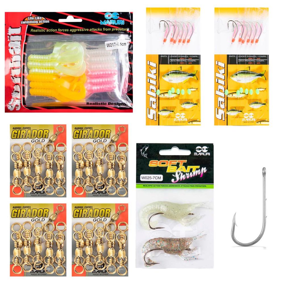 Kit De Pesca Vara Molinete Linha + 166 Acessórios Kin - Maruri O Kit de Utensílios para Pesca Kin - Maruri é a escolha ideal para pescadores que buscam uma combinação perfeita de ferramentas essenciais para diversas modalidades de pesca. Com itens selecionados para oferecer praticidade, desempenho e versatilidade, este kit atende tanto iniciantes quanto pescadores experientes, garantindo uma experiência completa e satisfatória em suas pescarias. A vara telescópica de 1,80m proporciona leveza e praticidade no transporte, sendo ideal para pescarias em ambientes variados. O molinete 200 assegura resistência e suavidade na tração, permitindo fisgadas precisas e maior controle. Para completar, a linha monofilamento de 0,30mm oferece durabilidade e alta performance em diferentes situações. Com uma seleção de 100 anzóis 4330 e chicotes prontos com anzóis nos tamanhos 12 e 16, o kit facilita a montagem de iscas de forma rápida e prática. Além disso, os giradores simples gold em quatro tamanhos diferentes garantem maior flexibilidade e eficiência na movimentação das iscas, evitando torções na linha e maximizando o desempenho. As iscas artificiais de silicone são o destaque deste kit. O modelo W017, com suas patas vibratórias, cria uma atração irresistível na superfície, enquanto o modelo W025, em formato de camarão, é perfeito para a pesca de robalos e outras espécies. Ambas oferecem realismo e alta eficiência, sendo essenciais em qualquer arsenal de pesca. Especificações Marca: Maruri Modelo: Kit Kin Vara telescópica: 1,80m Molinete: Modelo 200 Linha: Monofilamento 0,30mm Anzóis: 100 unidades (4330) Chicotes com anzóis: Tamanhos 12 e 16 Giradores simples gold: 10 unidades em cada tamanho (12, 14, 16, 18) Iscas artificiais: Silicone W017 e W025 Total de acessórios: 168 unidades