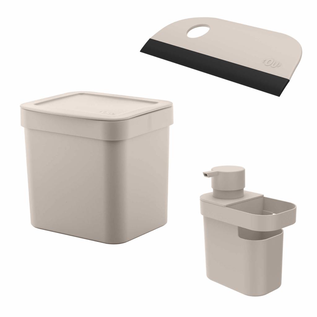 Kit Para Pia Cozinha Lixeira 4,7Lts Dispenser Detergente 650ml Rodo Compacto OU Promo