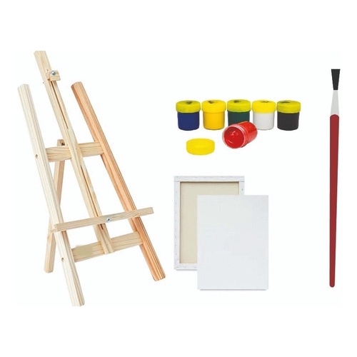 Kit para Pintura - Cavalete 70 cm, Tela de Pintura 30x40, Guache, Pincel e Paleta