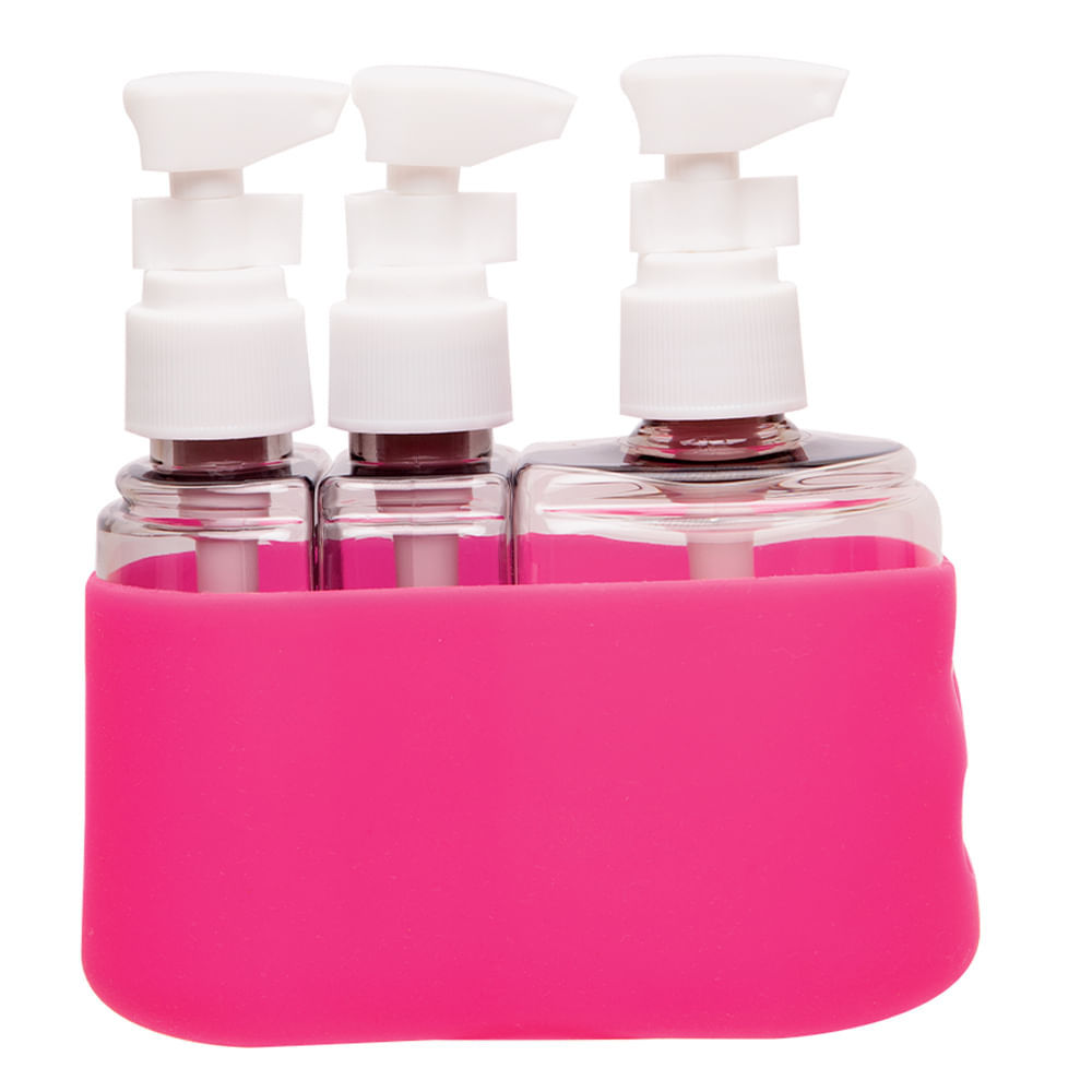 Kit de Frascos Ricca com Pump Praticidade e organização em viagens com o Kit de Frascos Ricca. Ideal para transportar cosméticos de forma compacta e segura. Descrição Longa: O Kit de Frascos Ricca Tra