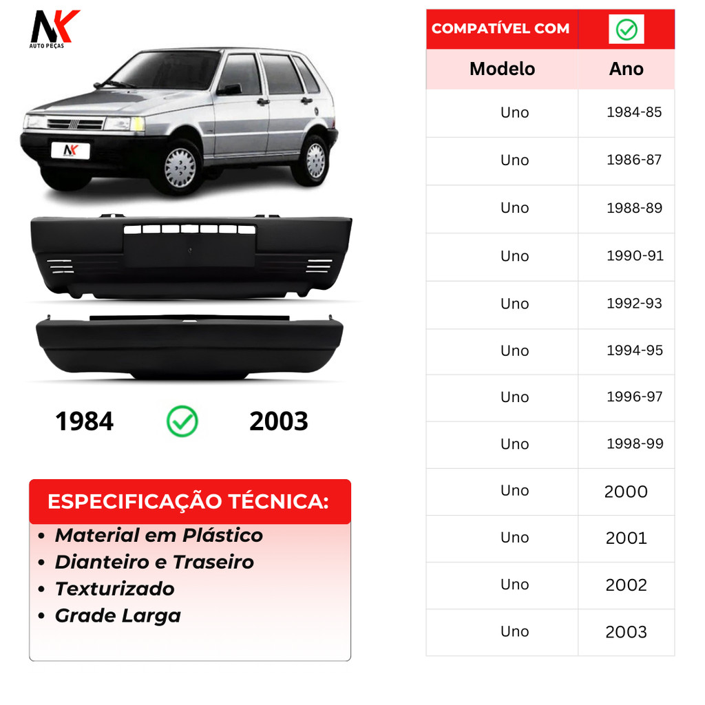 Kit Parachoque Dianteiro Traseiro Uno 1991 92 93 94 95 96 97 98 99 2000 á 2003