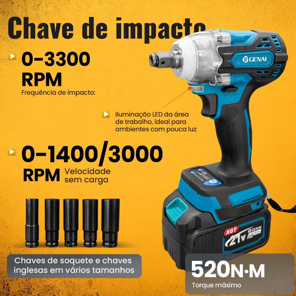 | Kit Parafasudeira Chave De Impacto + Furadeira de impacto 21v Port... este produto | R$ 459,99 | 54% | 4.8/5 | 1 |