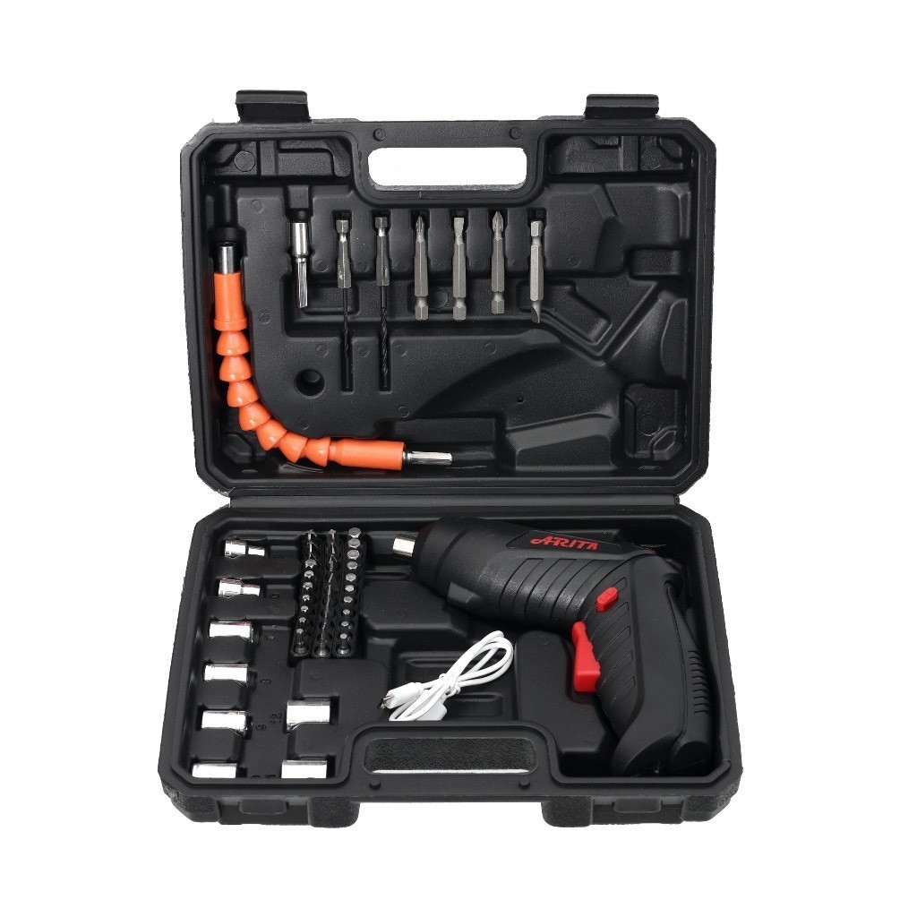 kit Parafusadeira/furadeira 48 Pçs À Bateria Carregador Usb (Dupla posição) C/Caixa de ferramentas