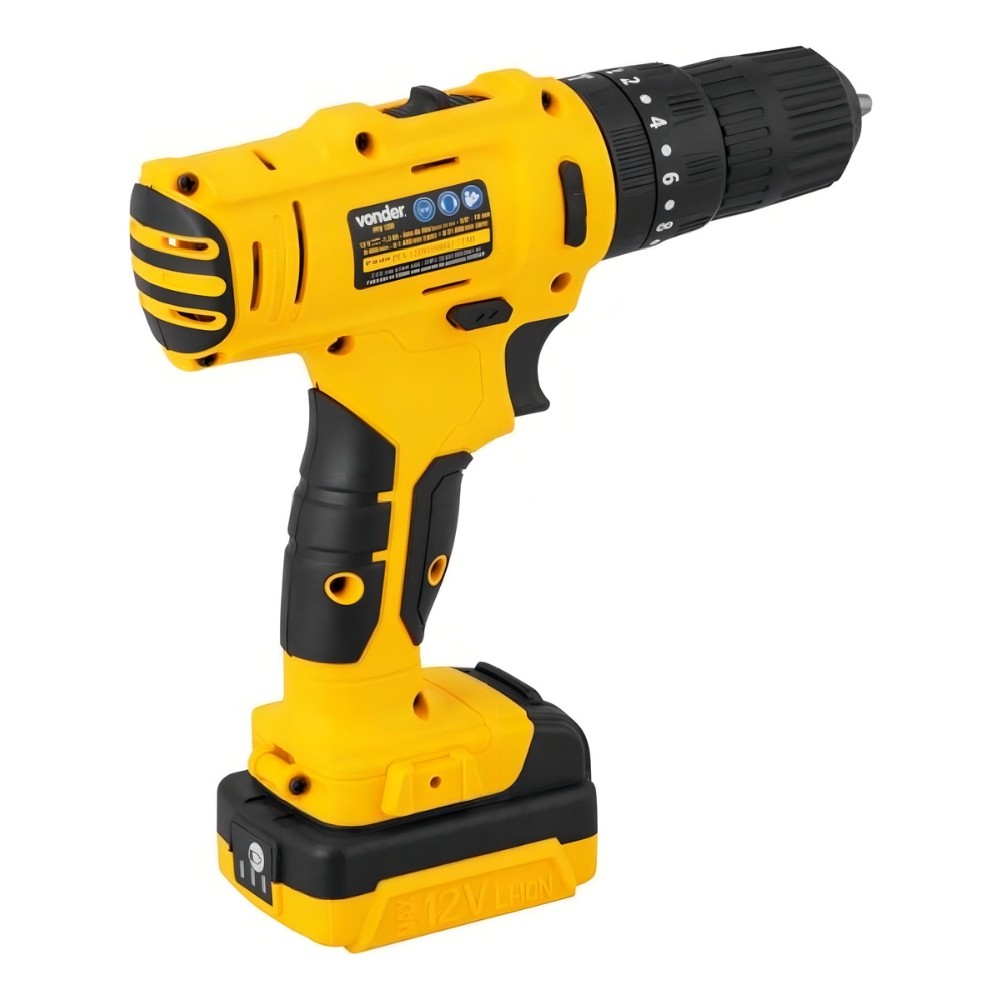 Kit Parafusadeira Furadeira de Impacto PFV 120i + 2 Baterias 12V Íons de lítio adicional Vonder PFV 120i Este kit de parafusadeira e furadeira a bateria 12 V com impacto é ideal para quem busca versatilidade, praticidade e maior autonomia em serviços de montagem, manutenção e perfuração. A ferramenta já acompanha uma bateria original e o kit inclui mais uma bateria adicional, permitindo trabalhar por mais tempo sem interrupções. Indicado para madeira, metal e alvenaria, atende tanto uso doméstico quanto aplicações profissionais leves. A parafusadeira conta com regulagem para 18 posições de torque, duas velocidades variáveis e três funções de operação — parafusadeira, furadeira sem impacto e furadeira com impacto — garantindo precisão e eficiência em diferentes tarefas. Possui LED integrado para melhor visibilidade do local de trabalho, indicador de carga da bateria e cabo com revestimento emborrachado, proporcionando conforto e segurança durante o uso. As baterias de íons de lítio oferecem alta eficiência de operação, não sofrem efeito memória e contam com LEDs indicadores de nível de carga. Características: Parafusadeira/Furadeira Marca: Vonder Modelo: PFV 120I Tensão da ferramenta: 12 V Tipo de mandril: Aperto rápido Capacidade do mandril: 3/8" – 10,0 mm Tipo de velocidade: Variável (2 velocidades) Rotações por minuto: 0 – 400/min / 0 – 1.400/min Impactos por minuto: 0 – 21.000/min Sistema de reversão: Sim Regulagem de torque: 18 posições Funções: Parafusadeira, furadeira sem impacto e furadeira com impacto Capacidade máxima de perfuração em aço: 10 mm Capacidade máxima de perfuração em madeira: 16 mm Capacidade de perfuração em concreto/alvenaria: 10 mm Frequência: 50 Hz / 60 Hz Massa aproximada da ferramenta: 1,075 kg Normas: ABNT NBR IEC 60745-1, ABNT NBR IEC 60745-2-1 e ABNT NBR IEC 60745-2-2 Baterias: Tipo de bateria: Íons de lítio Tensão: 12 V Capacidade: 1,3 Ah Quantidade de baterias no kit: 2 (1 original + 1 adicional) Tempo de carregamento: 3 a 5 horas Massa aproximada da bateria: 0,25 kg Tensão de entrada do carregador: 100 V ~ 240 V ~ bivolt automático Benefícios Maior autonomia de uso com duas baterias inclusas Versatilidade para diferentes aplicações com função impacto Controle e precisão com regulagem de torque e duas velocidades Mais conforto e segurança com LED integrado e cabo emborrachado Conteúdo da embalagem: 1 Parafusadeira/furadeira 1 maleta plástica 2 baterias 12 V – 1,3 Ah 1 fonte de alimentação bivolt automática 6 brocas (1,5 mm, 2,5 mm, 3 mm, 4 mm, 5 mm e 6 mm) 6 bits (fenda, phillips e pozidrive) 1 prolongador de 60 mm