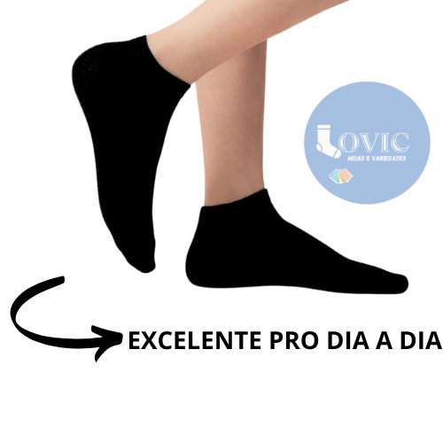 Kit Pares de Meias Pretas Soquete Cano Curto Masculina Feminina Unissex Kit 24/18/12