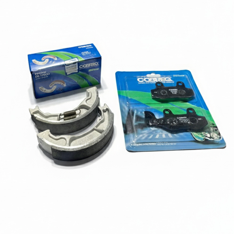 Kit Pastilha de Freio Dianteira + Lona / Patins de Freio Traseira Compatível com: Honda Cb300 2009 2010 (FREIO A TAMBOR NA TRASEIRA) Honda Cbx250 Twister 2001 a 2008 Fabricante: Cobreq Código do fabricante: N-940 / 0302-CP EAN: 7892679062686 / 7892679250021 A cobreq assegura a qualidade de seus produtos, para atuar nos sistemas dos veículos em geral a que se destinam, desde que sejam rigorosamente observadas as condições básicas. Conteúdo da Embalagem: 1 Par de Pastilha Dianteiro + 1 Par de Patins de freio Traseiro.