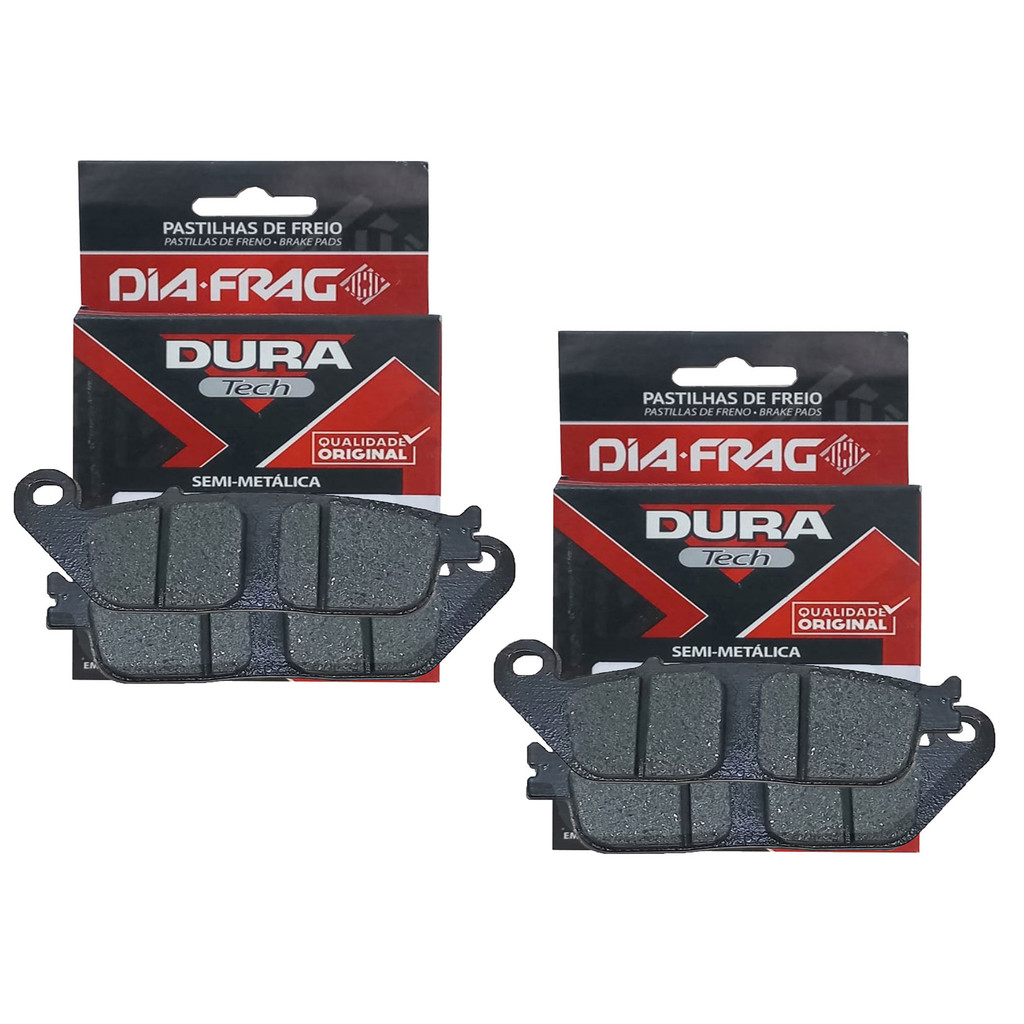 Kit Pastilhas de Freio Dianteiras (Dura Tech Semimetálica) Diafrag Especialmente projetada para motocicletas a partir de 500 CC, que exigem um melhor poder de frenagem devido as altas temperaturas, com menor desgaste das pastilhas e dos discos de freios Pastilha da melhor qualidade para frenagem da sua moto, testado e aprovado por laboratórios de qualidade! Não vai te deixar sem freio! Conteúdo da Embalagem: 01 Par de Pastilhas de Freio Dianteiras (Lado Direito) Diafrag Dura Tech (semimetálica) 01 Par de Pastilhas de Freio Dianteiras (Lado Esquerdo) Diafrag Dura Tech (semimetálica) OBS: 01 Par de Pastilhas PARA CADA DISCO (Dianteiro) !!! Aplicação Compatível Com: HONDA CB 600F Hornet sem ABS 2008 até 2014 CB 600F Hornet 2003 até 2007 CB 650F COM ABS 2014 até 2019 CBR 650F COM ABS 2014 até 2019 CB 650F SEM ABS 2014 até 2019 CBR 650F SEM ABS 2014 até 2019 KAWASAKI Versys 650 2015 até 2016 TRIUMPH Tiger 800 COM ABS 2012 até 2018 (pinça Nissin) Tiger 800 2012 até 2018 (pinça Nissin) BMW C600 SPORT 2011 A 2015 C650 2011 A 2013 C650 GT / SPORT 2014 A 2019 C EVOLUTION 2013 A 2020 Especificações: - Modelo: Dura Tech Semimetálica - Material: ferro / lona - Produzido com melhores equipamentos garantindo segurança e durabilidade. - Oferecendo o melhor custo beneficio, unindo qualidade e eficiência na sua utilidade. - Possui medidas originais - Melhor dissipação de calor e atrito com o disco de freio - Ideal Para Reposição - Maior segurança ao motociclista - Alta Qualidade E Resistência A Dia-Frag possui ampla know-how na fabricação de alumínio, materiais de fricção e borracha, e se destaca entre a tecnologia de ponta e as modernas instalações fabris com máquinas de precisão, laboratórios de ensaios, metrologia e equipamentos de precisão. Possui certificados de qualidade nacionais e internacionais. Isso mostra que todos os produtos são produzidos de acordo com as mais rígidas normas técnicas de fabricação e controle de qualidade. Importante Recomendamos que a instalação seja feita por profissional especializado e não nos responsabilizamos pelo mau uso do produto. Verifique, antes da compra, se as medidas das pastilhas são compatíveis com a da sua moto.