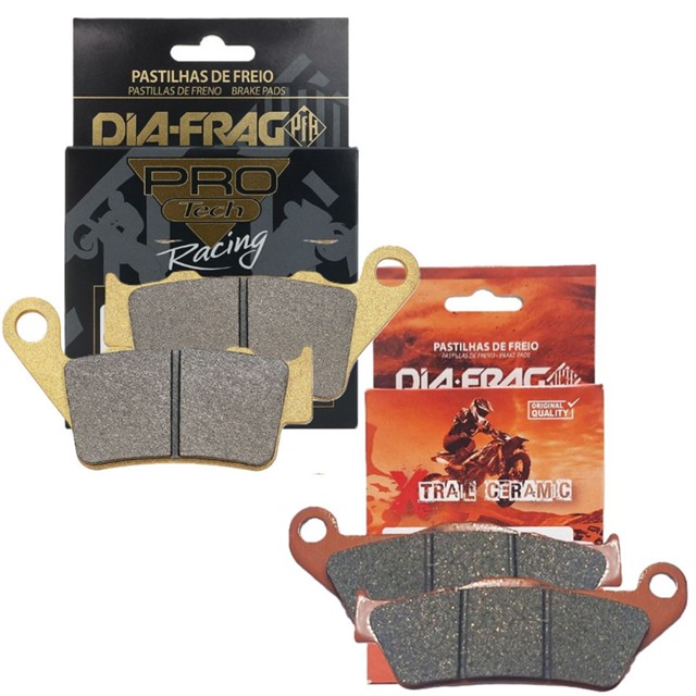 Kit Pastilhas de Freio - DIAFRAG Pastilhas da melhor qualidade para frenagem da sua moto, testado e aprovado por laboratórios de qualidade! Não vai te deixar sem freio! ** ATENÇÃO ** PASTILHA DIANTEIRA METÁLICA E PASTILHA TRASEIRA CERÂMICA !!! Compatível Com: ROYAL ENFIELD Meteor 350 Himalayan 411 Meteor 350 Bullet 500 Classic 500 (todos os anos) Conteúdo da Embalagem: 01 Par de Pastilhas de Freio Dianteira Diafrag XTRAIL (Cerâmica) 01 Par de Pastilhas de Freio Traseira Diafrag Pro Tech Racing (Metálica) ** ATENÇÃO ** Pastilhas Chanfradas O chanfro e o corte nas pastilhas de freio ajudam a evitar o superaquecimento do componente, proporcionando melhor refrigeração, evacuação do pó da pastilha e redução de ruídos, além de evitar o vitrificação da peça. As Pastilhas Pro Tech Racing são produzidas com materiais metálicos de alta qualidade, garantindo excelente resposta, suavidade e progressividade na frenagem, com baixo ruído. As Pastilhas XTRAIL Ceramic são sinterizadas, fabricadas com material cerâmico de última geração. Desenvolvidas para oferecer desempenho superior, inclusive em aplicações off-road e situações de uso extremo (Cross-Enduro). Importante Recomendamos que a instalação seja feita por um profissional especializado. Não nos responsabilizamos pelo uso incorreto do produto. Verifique, antes da compra, se as medidas das pastilhas são compatíveis com a da sua motocicleta.