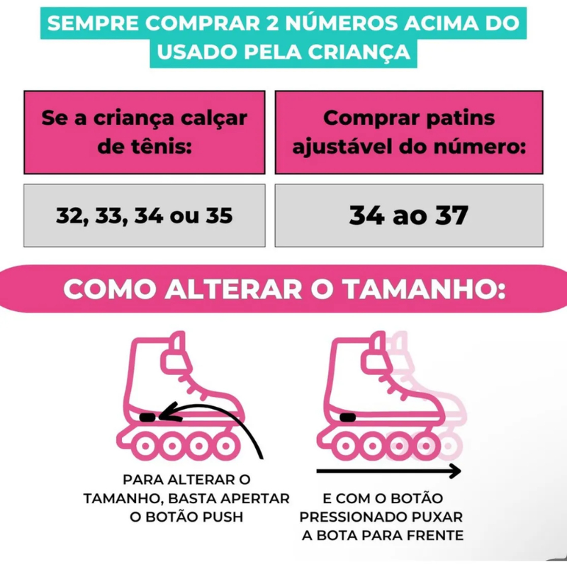 🚀 KIT PATINS QUAD UNITOYS TURMA DA AVENTURA – AJUSTÁVEL 34 A 37 Alegria, proteção e segurança para a criançada que está começando a deslizar. Este kit traz tudo que um iniciante precisa para aprender com mais estabilidade e confiança, sem abrir mão do visual chamativo. 🛡️ Por que este kit se destaca • Segurança extra em primeiro lugar Patins quad com quatro rodas que ajudam no equilíbrio e dão mais confiança ao aprender. Inclui kit completo de proteção para reduzir riscos em quedas: capacete, joelheiras, cotoveleiras e luvas. Freio frontal, permitindo controle de velocidade nas primeiras experiências. Certificação de segurança pelo Inmetro, reforçando procedência e confiança para uso infantil. (Magazine Luiza) • Conforto e usabilidade Ajuste de tamanho de 34 a 37, ideal para acompanhar crescimento e prolongar uso. Presilhas reforçadas e sistema de ajuste que mantém o pé estável no patins. Cano flexível, facilitando o movimento e reduzindo pontos de aperto exagerado. • Visual colorido e moderno Combinação de preto com detalhes em amarelo, que costuma agradar ao público menino, mantendo estilo esportivo e vibrante. Rodas e detalhes contrastantes deixam o produto atraente sem perder o foco em segurança. • Resistência e durabilidade Chassis em material plástico resistente, rodas em PVC e rolamentos de boa qualidade para uso contínuo em calçadas, parques e áreas urbanas. Suporta até 60 kg, o que aumenta a margem de segurança e uso prolongado para crianças maiores ou com mais peso. 🔧 Especificações rápidas Tamanho ajustável: 34–37 Peso suportado: até 60 kg Tipo: Patins quad Freio frontal e rolamentos ABEC 7 Kit de proteção incluso: capacete, joelheiras, cotoveleiras e luvas Público indicado: + 6 anos Ideal para meninos e meninas, com destaque visual atraente para quem gosta de cores fortes 📦 Conteúdo do kit 1 par de patins quad ajustáveis 1 capacete 1 par de joelheiras 1 par de cotoveleiras 1 par de luvas