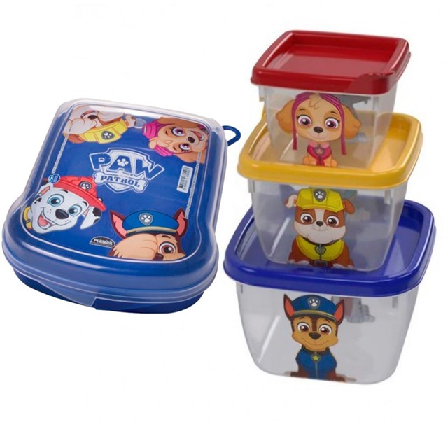 Kit Patrulha Canina Cj 3 Potes e Sanduicheira infantil escolar Plasútil