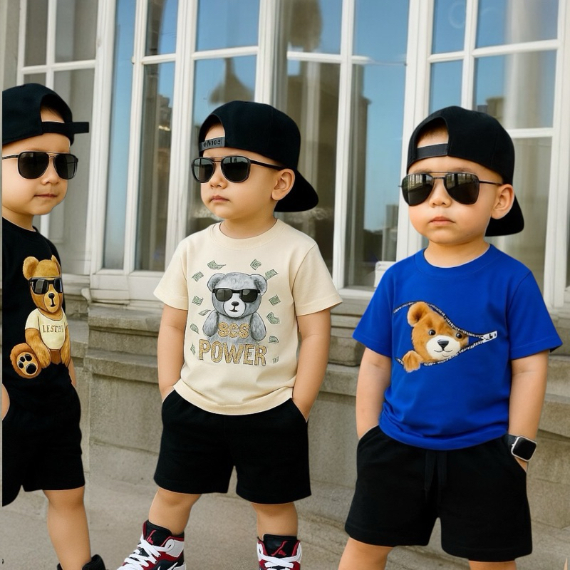 Kit peças de Roupa confortável infantil menino menina camiseta + bermuda com estampa urso frente e co
