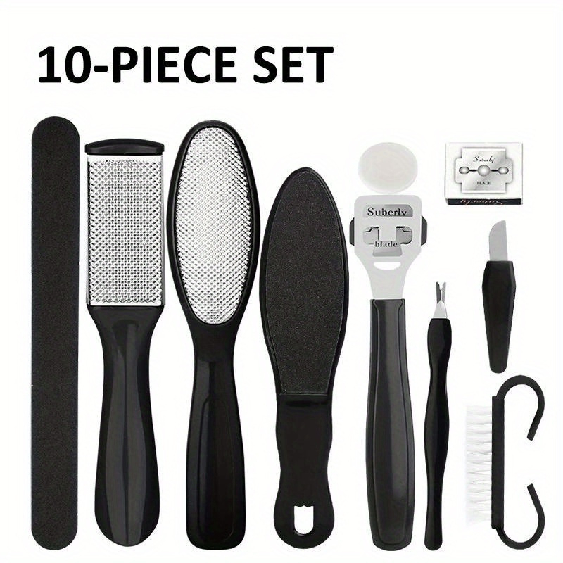 Kit Pedicure Profissional 10 em 1 em Aço Inoxidável | Cuidados com os Pés | Removedor de Pele Morta