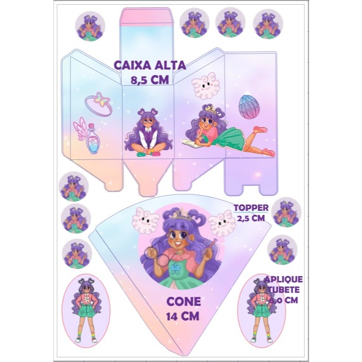 LEIA COM ATENÇÃO LEMBRANCINHAS PERSONALIZADAS, SEM NOME CONFECCIONAMOS EM TODOS OS TEMAS SEM ALTERAÇÃO E ARTE PADRÃO DA LOJA, CONTENDO: KIT CONTÉM 110 ITENS (DESMONTADOS) 05 CAIXAS MILK (10CM) 05 CAIXAS PIRÂMIDE (10CM) 05 CAIXAS BIS DUPLO 05 CONES (14CM) 05 CAIXAS CUBO (5X5CM) 65 TAGS PARA DOCINHOS (2,5CM) 20 TAGS PARA TUBETES (6CM) OBSERVAÇÕES: SÃO FOLHAS PARA RECORTE (cliente recorta, dobra e cola) Dúvidas com relação a montagem chamar no chat. PRODUZIDO EM PAPEL FOTOGRÁFICO 180G KIT SEM SUBSTITUIÇÕES DE ITENS; NÃO SÃO PERSONALIZADOS COM NOME E IDADE; PRODUTO SEM DEVOLUÇÃO; NÃO ACEITAMOS CANCELAMENTOS PÓS COMPRA. IMPORTANTE SABER: As cores das fotos podem não representar fidelidade, podendo sofrer pequenas alterações por causa do monitor de cada computador, as cores podem variar de acordo com o brilho e contraste do seu monitor. Por se tratarem de produtos artesanais e únicos, podem ocorrer pequenas variações. As medidas porém sofrem pequenas diferenças em relação ao corte entre 1 e 2 milímetros.