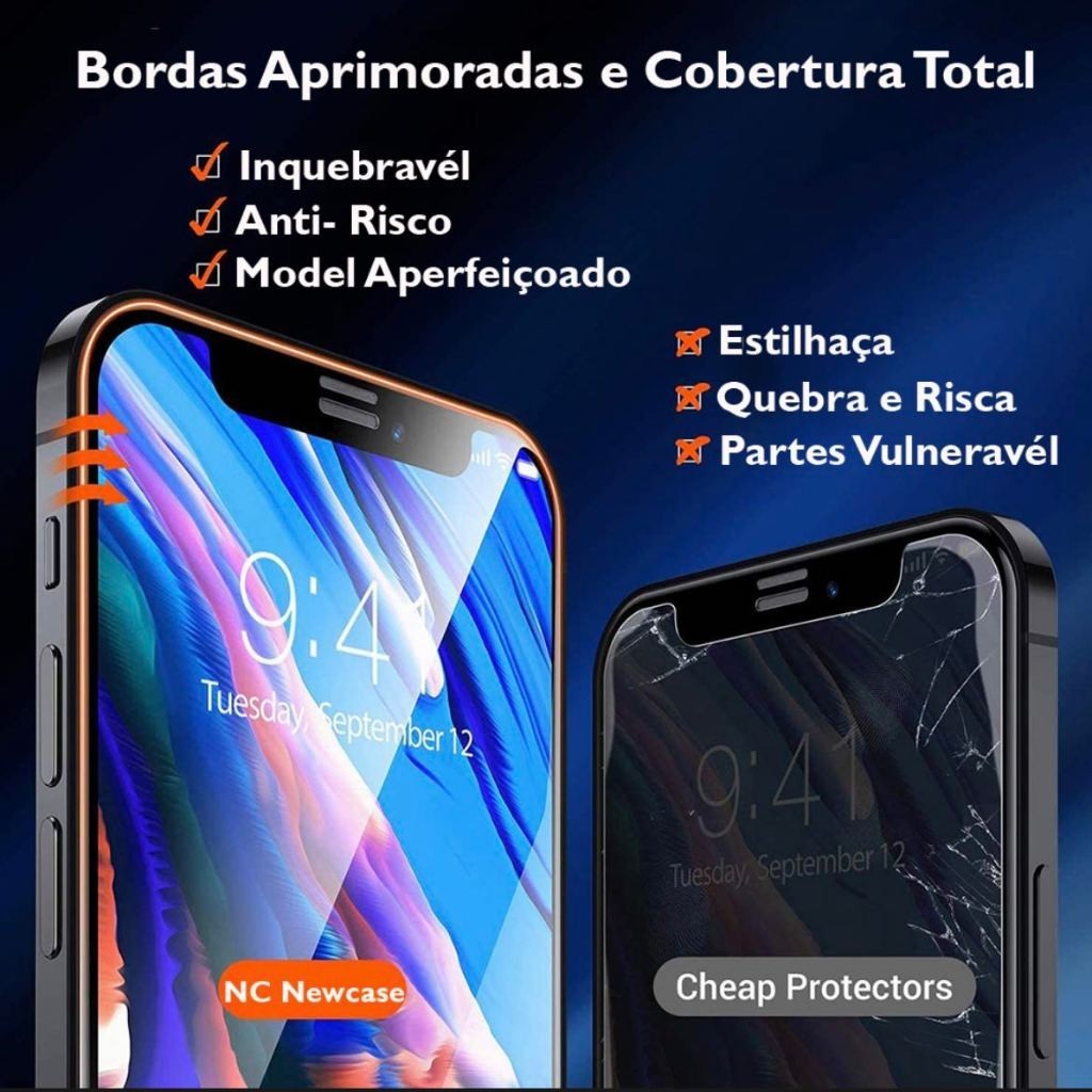 Descrição Super Resistente, melhor TOUCH, melhor durabilidade, melhor resolução de tela e não quebra fácil !!! Nano protetor de tela de revestimento de cerâmica dureza 9D óleo hidrofóbico antishock nano; CARACTERÍSTICAS: Uma mistura indestrutível de PMMA e PET. A forte elasticidade e a estrutura anticolisão mantém extrema durabilidade; O protetor de tela é o Full Glue, que possui um adesivo forte que facilita a instalação e prende o filme com firmeza para não afetar a sensibilidade da tela de toque; - Este modelo possui 1mm a menos para possibilitar o maior uso de capas; - Não atrapalha sensibilidade e touch; - Este modelo possui proteção contra riscos e arranhões na tela; - Com recortes necessários e exatos. ATENÇÃO: É de extrema importância que o comprador selecione o modelo correto para o seu aparelho no ato da compra! COMPATIBILIDADE: (A escolher na compra. Não sendo possível alterar) - iPhone 6 - iPhone 6s - iPhone 7 - iPhone 7 Plus - iPhone 8 - iPhone 8 Plus - iPhone X - iPhone XS - iPhone XR - iPhone XS Max - iPhone 11 - iPhone 11 Pro - iPhone 11 Pro Max - iPhone 12 - iPhone 12 Pro - iPhone 12 Pro Max - iPhone 13 - iPhone 13 Pro - iPhone 13 Pro Max - iPhone 14 - iPhone 14 Plus - iPhone 14 Pro - iPhone 14 Pro Max -iphone 15 -iphone 15 pro -iphone 15 plus -iphone 15 pro max
