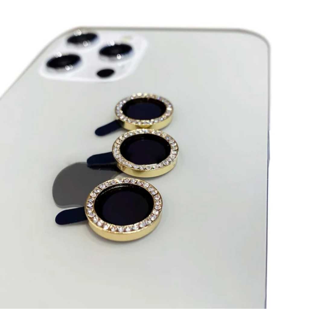 Kit Pelicula de Câmera Metal com Strass Brilho para Iphone 11, 12, 13, 14, 15 Mini Plus Pro Max