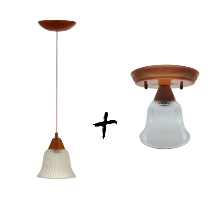 Kit Pendente Sino 1l + Plafon Sino Soquete E27 110/220v sala quarto cozinha banheiro lavabo Branco Preto Cobre Marrom