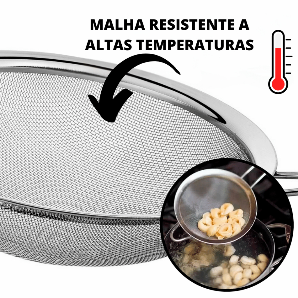 | 3 Pçs Peneira Coador Em Aço Inox Para Cozinha 3 Tamanhos P M G 8/10... | R$ 15,99 | 30% | 4.8/5 | 4.2 mil |