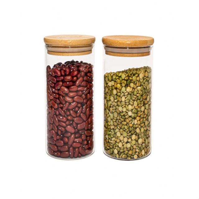 Kit PEQUENO 2 Potes herméticos Vidro para mantimentos com tampa de Bambu 8 cm