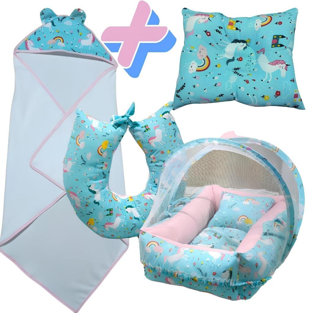 Kit Perfeito Toalha Personalizada + Ninho Redutor, Almofada de Amamentação e Travesseiro Anatômico