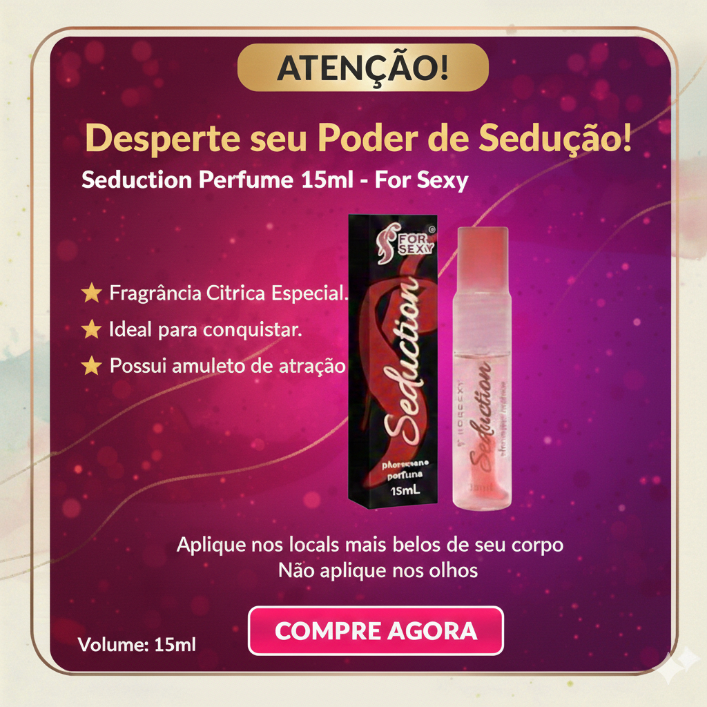 Pherophemme: A Essência da Sedução Feminina Descubra o poder de atração com Pherophemme, o perfume de feromônio feminino projetado para despertar a paixão e atrair olhares masculinos. Pherophemme combina a ciência dos feromônios com uma fragrância irresistível, criando uma aura de sensualidade que envolve e encanta. Notas Olfativas: Notas de Saída: Uma mistura fresca de frutas cítricas e frutas vermelhas, que proporciona uma primeira impressão vibrante e energizante. O Poder dos Feromônios: Pherophemme é enriquecido com feromônios cuidadosamente selecionados para aumentar a atração e criar uma conexão instantânea e irresistível. Sinta-se confiante e poderosa, sabendo que você possui uma arma secreta para capturar a atenção e o desejo daqueles ao seu redor. Para Quem é Pherophemme: Ideal para mulheres que desejam destacar sua sensualidade natural e intensificar suas interações sociais. Seja para um encontro romântico ou uma noite especial, Pherophemme é o toque final perfeito para qualquer ocasião. Experimente Pherophemme e deixe a magia dos feromônios transformar sua presença em uma experiência inesquecível. vem com um exclusivo Amuleto de Atração para aumentar o poder do Perfume. Tipo: Perfume de 15ml Funções: Atrativo e Aromatizante Lubrificante: Não Comestível: Não Seduction Perfume 15ml For Sexy é um perfume elaborado principalmente para te ajudar a aumentar seu poder de atração e sedução. Possui um aroma Cítrico bem especial. Um perfume diferenciado. Ideal para fazer os homens caírem a seus pés. Possui um amuleto de atração para melhorar o poder do perfume. Aplique nos locais mais belos de seu corpo Não aplique nos olhos Volume: 15ml