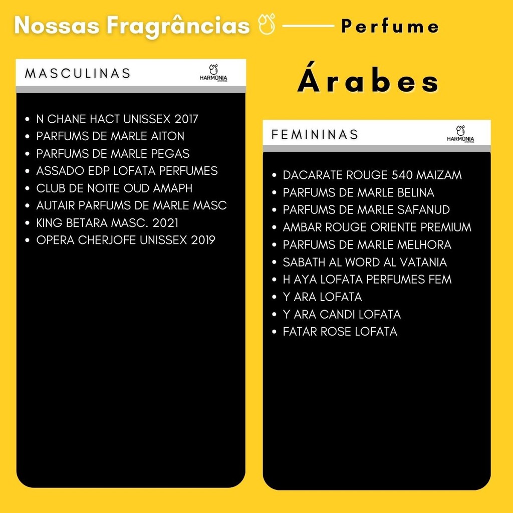 Kit 5 Essências Perfume Árabe 200ml + 1 Base 500ml Quer criar perfumes e aromatizadores com fragrâncias inspiradas nos grandes clássicos da perfumaria árabe? Com o Kit Harmonia Aromas, você terá tudo o que precisa para começar sua produção com qualidade profissional e praticidade. Desenvolvido para artesãos e empreendedores da aromatização, o kit traz essências concentradas e de alta fixação, ideais para criar perfumes, sabonetes, difusores, sachês e muito mais. Características do produto: Conteúdo: 5 Essências de 200ml cada + 1 Base 500ml Volume total: 600 ml Validade: 18 meses Embalagem: Pet âmbar com tampa lacre Garantia do vendedor: 3 meses contra defeitos de fabricação Vantagens das essências Harmonia Aromas: Matéria-prima importada de alta qualidade (fornecidas também para grandes empresas de cosméticos) Aromas inspirados em sucessos olfativos internacionais Excelente fixação e durabilidade Essências multiuso: perfumes, sabonetes, aromatizadores de ambiente, difusores elétricos e de varetas, sachês perfumados e lembrancinhas Com o Kit Harmonia Aromas, você poderá: Produzir perfumes e aromatizadores artesanais com fragrâncias até 98% semelhantes às originais Controlar a concentração conforme sua necessidade (leve, moderado ou intenso) Criar produtos personalizados para uso próprio, presentes ou revenda Contar com suporte e manual com receitas e dicas exclusivas para facilitar sua produção Garanta já o seu Kit 5 Essências Perfume Árabe 200ml + 1 Base 500ml e comece hoje mesmo a produzir fragrâncias únicas com qualidade profissional. Clique em Comprar Agora e escolha suas fragrâncias favoritas (ou receba as mais vendidas)! Harmonia Aromas – Paixão por cheiros, pessoas e memórias.