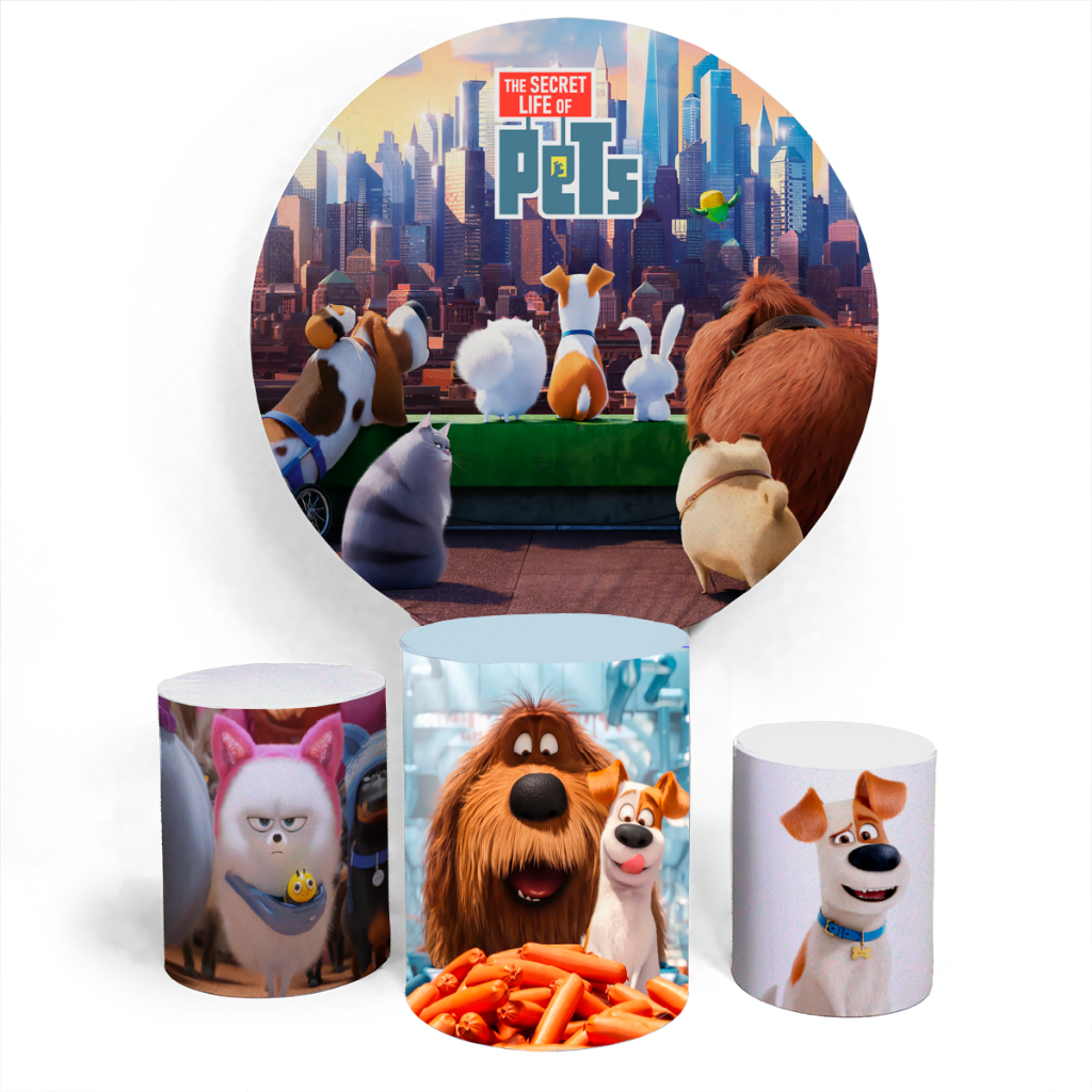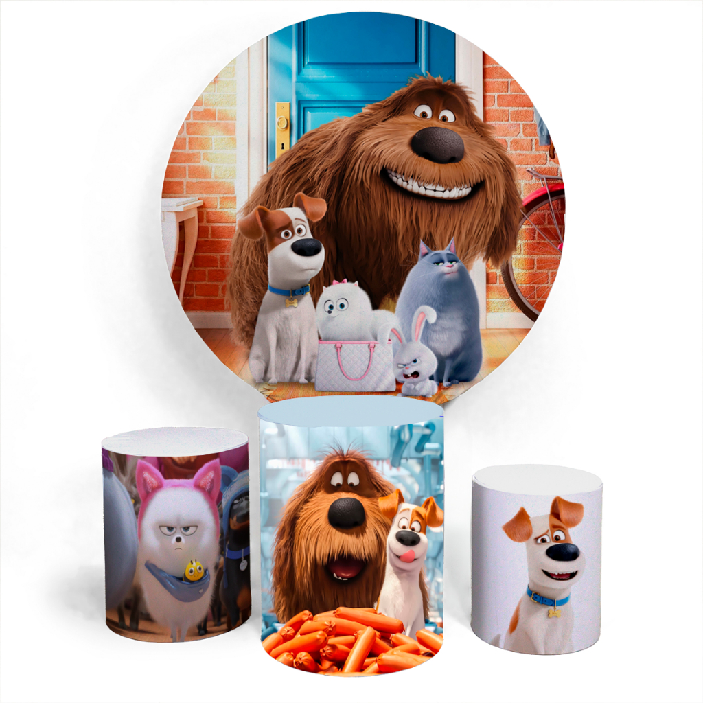 Kit Personalizado Capa Painel Redondo E Trio De Cilindro Com Elastico +.Desenho Animado Pets Festa De Aniversario