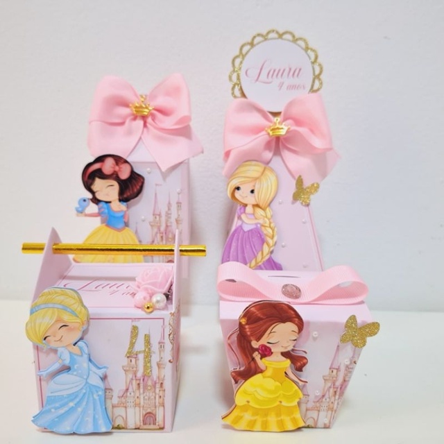 ( Atenção ao PRAZO E A QUANTIDADE ) Incluso : - Laço e Pedraria como as fotos acima . - Produzidos em Papel Offset 180g - Caixas vazias e pré montadas A caixa é como nas fotos , por tanto não enviaremos arte ( Após a compra envie NOME E IDADE )