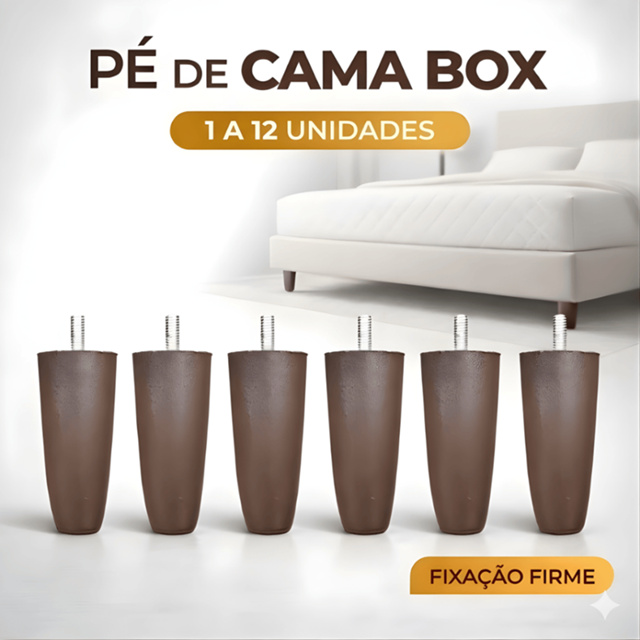 Kit Pés Cama Box 12cm Reforçado com Parafuso | 1 a 12 Un | Casal Queen Super Queen Solteiro Base