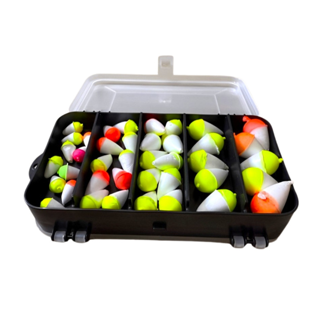 Kit Pesca Estojo Caixa Organizador 40 Boias Isopor Lambari Vários Tamanhos Bóia Pescaria Pesqueiro