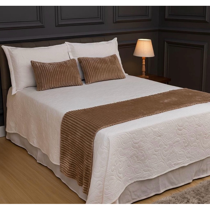 Kit Peseira canelada 1 pezeira + 2 capas almofadas Cama Casal-Queen-King-Box Tecido Fofinho piseira Canelado