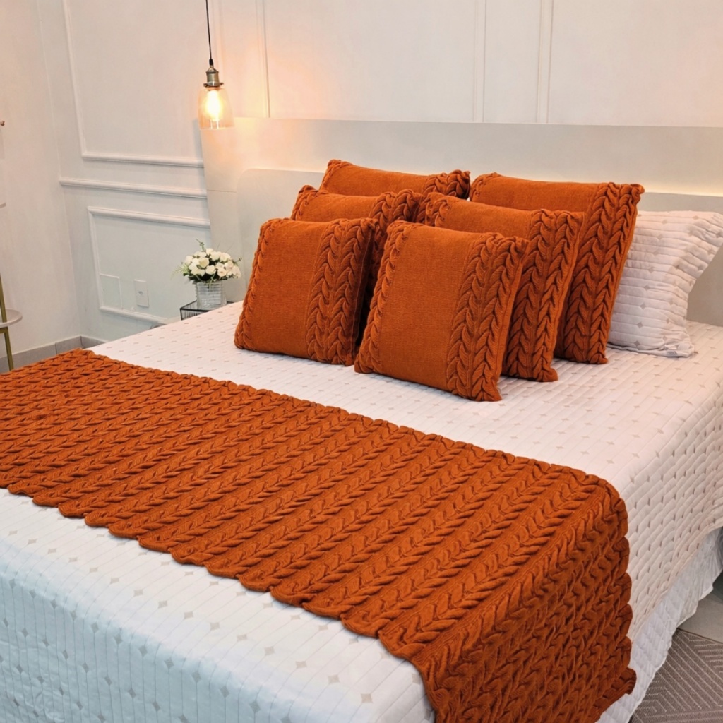 Kit Peseira Manta Tricot Sofá Cama Casal Queen King Aconchego Home Decor + 2 Capas Almofadas