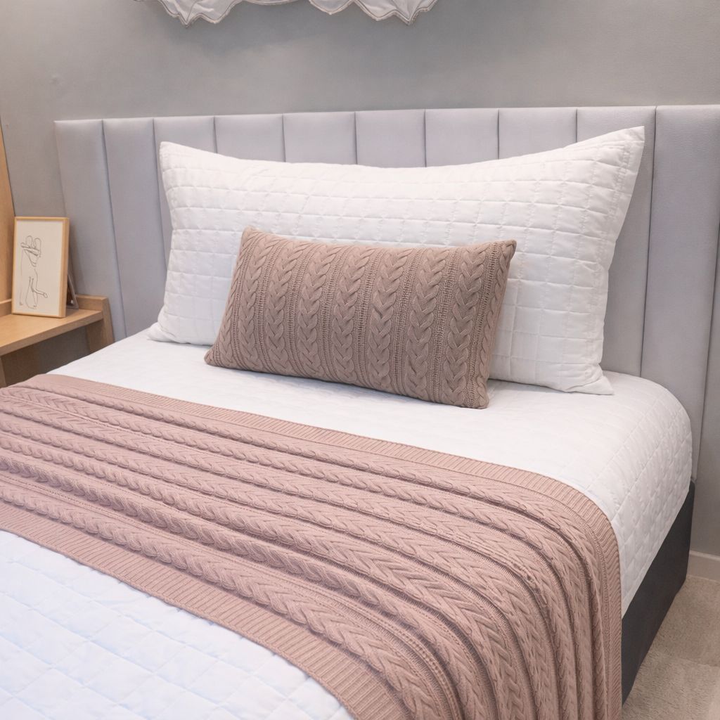 KIT PESEIRA TRANÇADA SOLTEIRO + 1 CAPA ALMOFADA 30X50 TRICOT DECORAÇÃO QUARTO LUXO VÁRIAS CORES