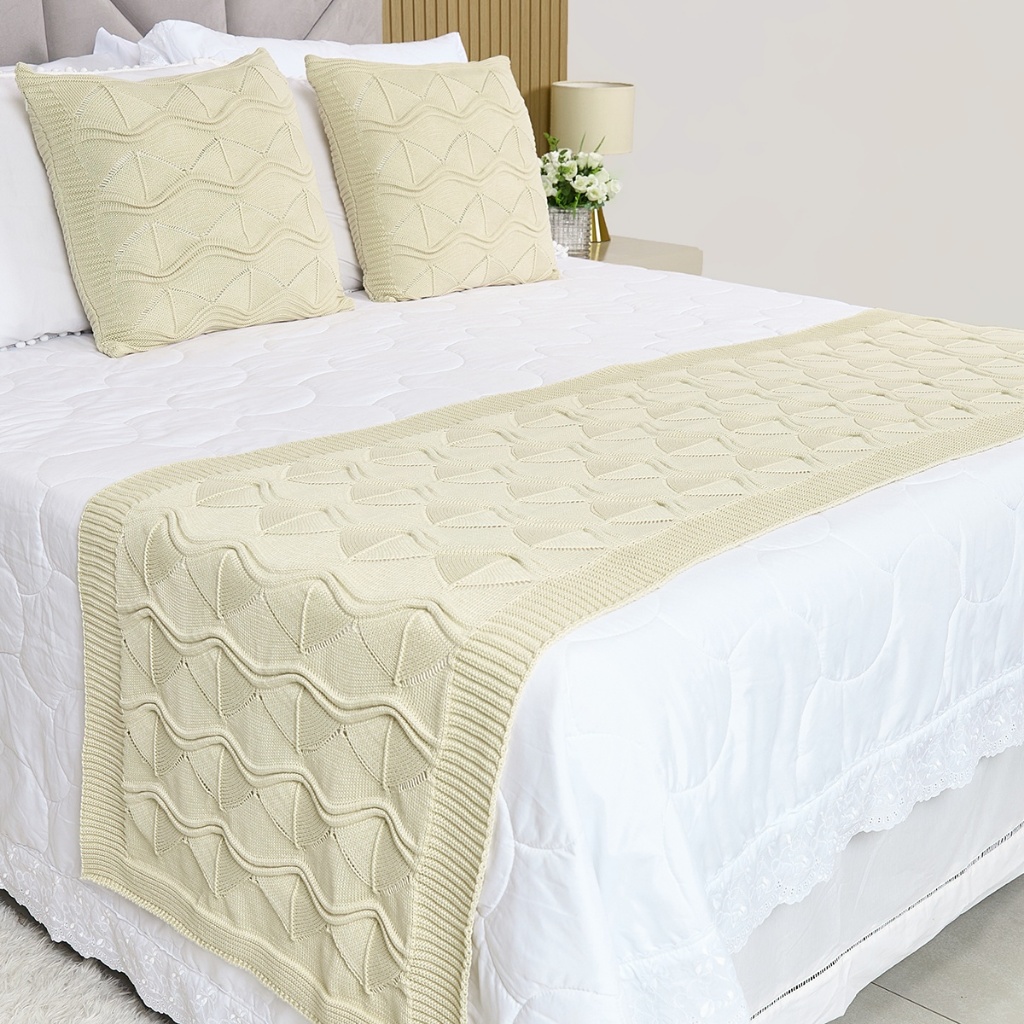 Kit Peseira Tricot Cama Casal Queen Relevo + 2 Capas Almofadas