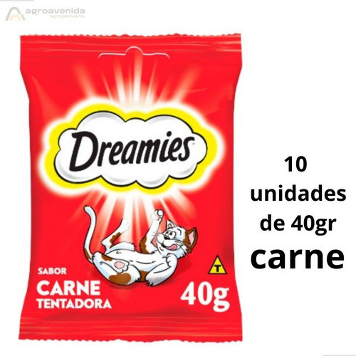 kit Petisco Dreamies Para Gatos Adultos Sabor Carne 40g 10un