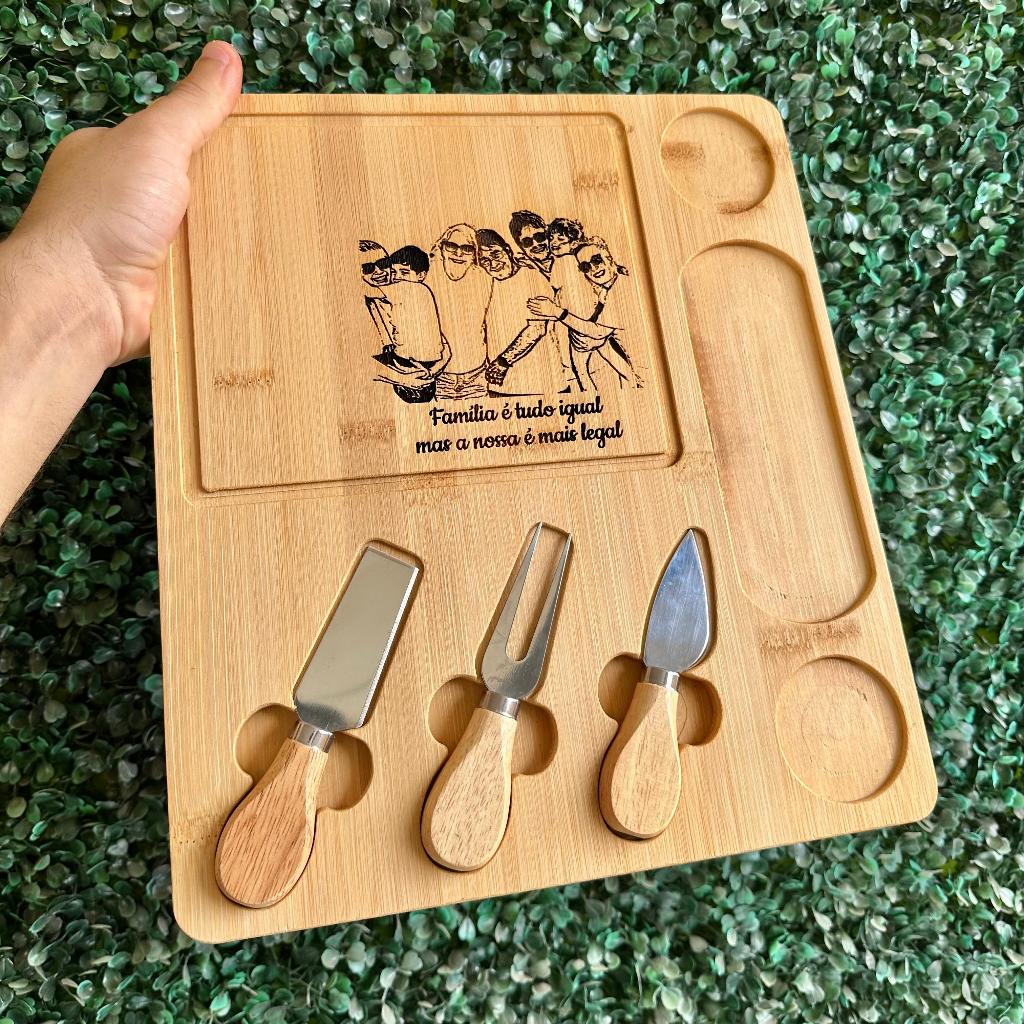 Kit Petisqueira em bambu com 3 utensílios Elegante Personalizada com foto e nome