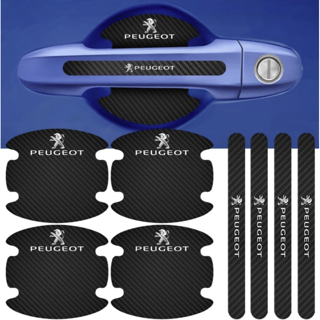 Kit Peugeot 8 Peças Adesivo Protetor Maçaneta de Porta Fibra de Carbono Carro Anti Arranhões