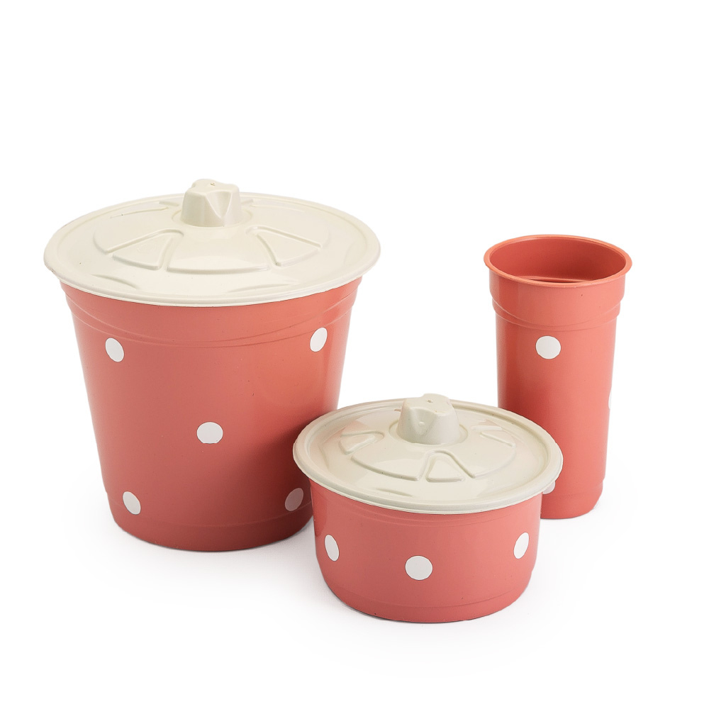 Kit Pia 3 Peças Plástico Poa Cesto de Lixo e Porta Detergent5e Cozinha Decoração de Casa