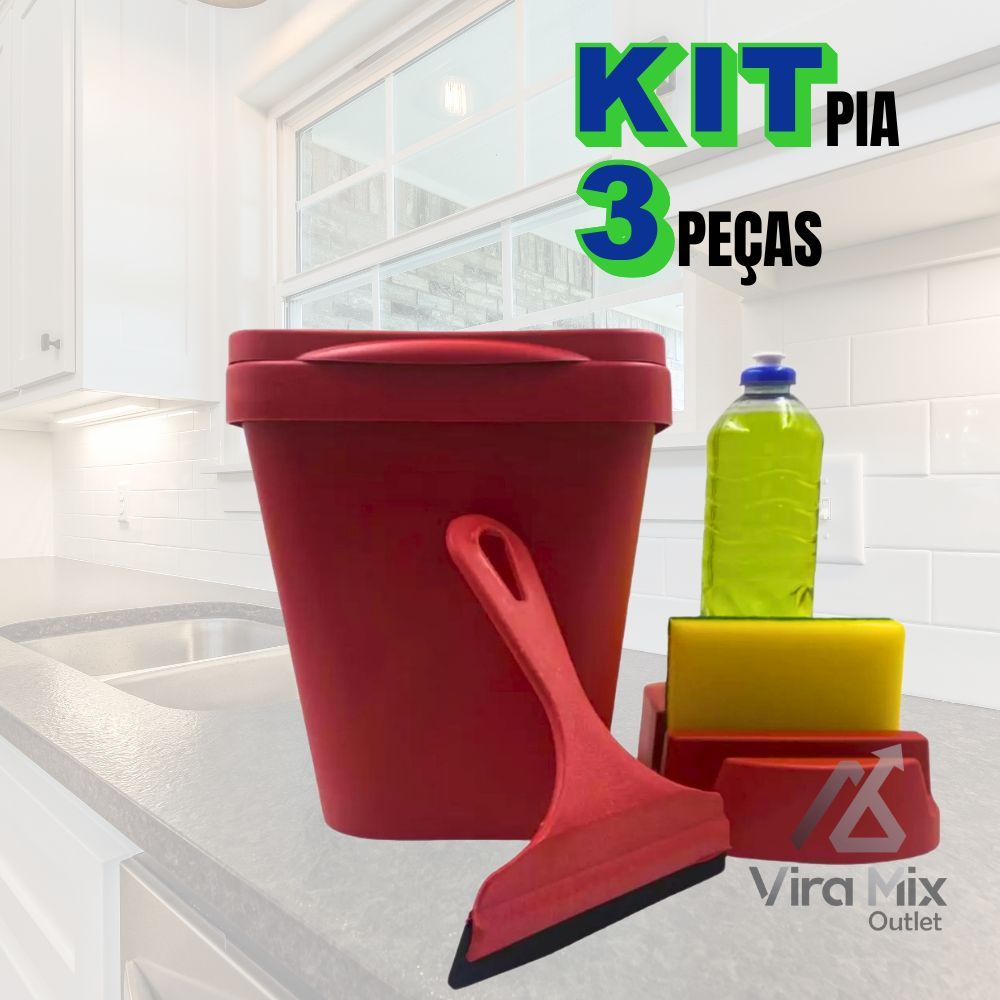Kit Pia Cozinha Prático com Lixeira Rodo e Porta Detergente