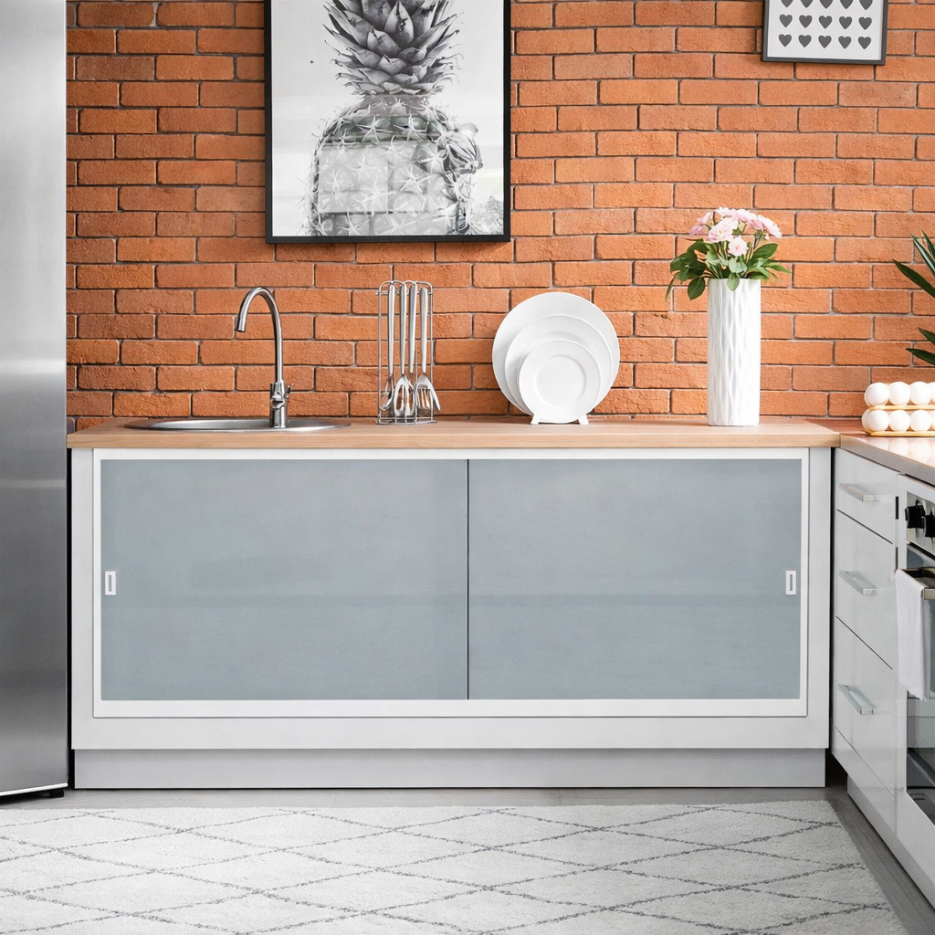 Kit Pia Estrutura Porcelanato Vidro Gabinete 1,00 LARGURA X 1,20 ALTURA Branco Perfeito para quem busca kit perfil para pia 1,00x1,20m, estrutura para armário de cozinha, perfil de alumínio para gabinete, trilho para porta de armário sob pia e acabamento profissional com excelente custo-benefício. Os Perfis de Alumínio AL Ferragens oferecem alta resistência, durabilidade e excelente acabamento para montagem de armário sob pia. Produzido em alumínio de qualidade superior, o kit garante estrutura firme, deslizamento suave das portas e acabamento profissional para cozinhas e banheiros. Ideal para armário de cozinha, gabinete de pia, armário de banheiro, fechamento em porcelanato, MDF, vidro ou outros materiais. Proporciona organização, praticidade e visual moderno ao ambiente. Fabricado em alumínio preto, resistente à umidade e corrosão, é indicado para áreas molhadas, oferecendo maior vida útil e segurança na instalação. Diferenciais do Produto: - Perfil de alumínio reforçado e resistente - Acabamento moderno na cor branco - Estrutura firme para armário sob pia - Trilhos com escovas para melhor vedação - Roldanas que garantem deslizamento suave - Fácil instalação - Ideal para cozinha, banheiro e área de serviço Conteúdo do Kit: 2 Perfis laterais 1 Trilho superior 1 Trilho inferior 2 Puxadores autocolantes 4 Roldanas 4 Acabamentos laterais 2 Batedores laterais 4 Escovas para trilho superior Parafusos e buchas para instalação Especificações Técnicas: Medida: 1,00m de largura x 1,20m de altura Material: Alumínio Cor: Branco Marca: AL Ferragens Sobre nós: Localizada em Sorocaba-SP, nossa infraestrutura é desenvolvida para agilidade em despache com máxima velocidade, além de um sistema gerenciador de alta tecnologia que facilitam os processos desde o atendimento ao momento da entrega. Temos uma equipe com mais de 80 colaboradores qualificados com ampla experiência no setor vidreiro. Possuímos uma frota bem equipada e um estoque com mais de 150mil itens.