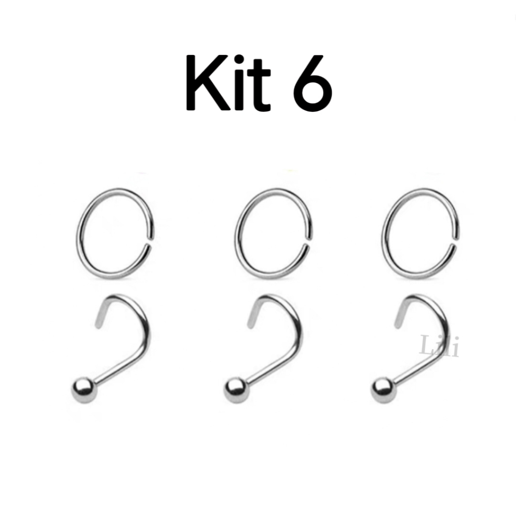 Kit Piercing Nostril bolinha + Argora fina aço cirúrgico