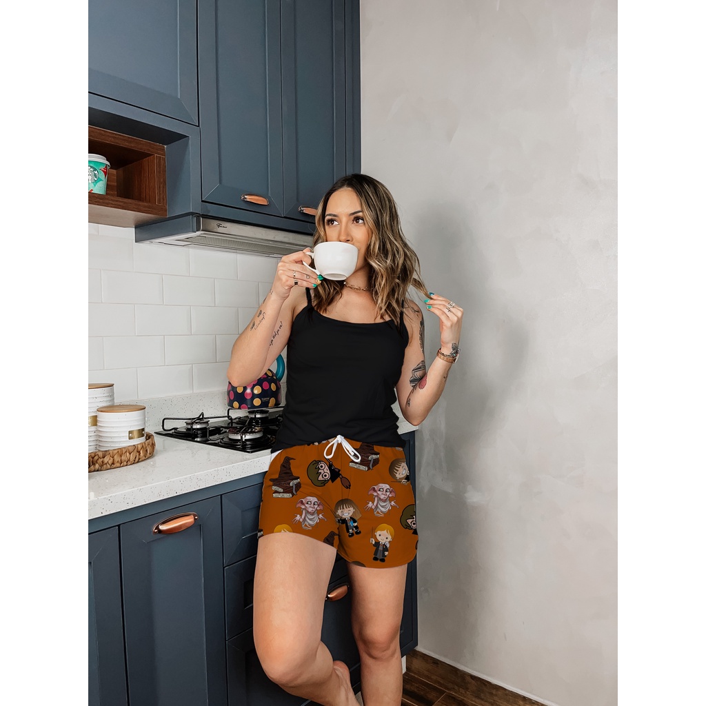 Kit Pijama Casal Mozão Baby Doll Preto Shorts Masculino Samba Canção Harry Potter