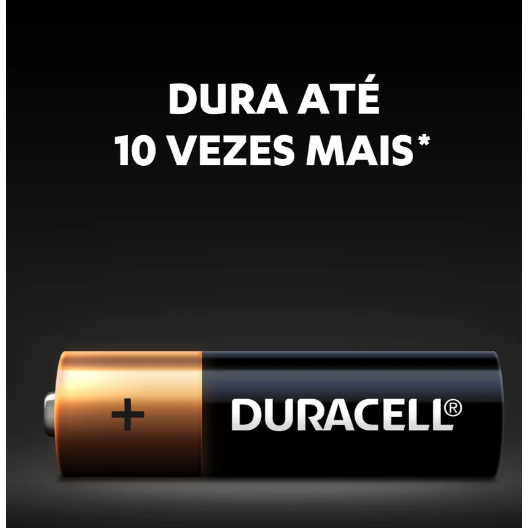 A Duracell fabrica pilhas alcalinas de alta performance, baterias especiais e pilhas recarregáveis. Fundada no início dos anos 40, a empresa se tornou, desde então, uma marca icônica em energia pessoal e confiável por suas pilhas compactas e de maior duração. E no coração disso tudo está o Coelhinho da Duracell. As pilhas AA (Pilha Pequena) são projetadas para fornecerem energia extra e proporcionam energia confiável aos aparelhos do dia a dia, como brinquedos, controles remotos, consoles de jogos portáteis, fechaduras eletrônicas, lanternas, etc. Além disso, a tecnologia de Duracell preserva a energia das pilhas que ainda não foram usadas, por até 10 anos. As Pilhas Alcalinas Duracell duram até 10 vezes mais* vs. pilhas comuns de zinco-carbono. * Os resultados podem variar por dispositivo. Mantenha as pilhas fora do alcance das crianças. Se engolidas, consulte um médico imediatamente. Pode explodir, vazar e/ou causar queimaduras, caso recarregado, descartado no fogo, misturado com uma pilha diferente, inserido ao contrário ou desmontado. Substitua todas as pilhas ao mesmo tempo. Mantenha as pilhas na embalagem original até seu uso. Não transporte pilhas no seu bolso ou na bolsa. Não remova a etiqueta da pilha. Composição:Dióxido de Manganês, Zinco, Hidróxido de Potássio, Grafite e Óxido de Zinco