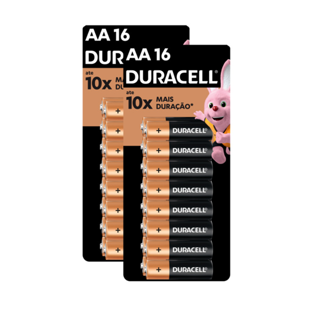 Kit Pilha Alcalina AA com 16 Unidades 2 Cartelas - Duracell