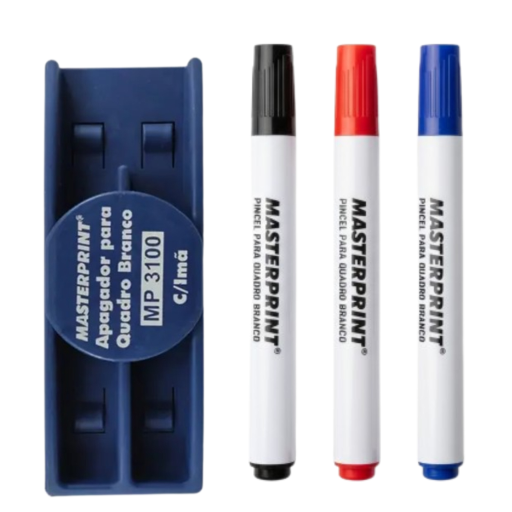 kit Pincel Caneta Quadro Branco Lousa 3 Cores Diversas + Apagador Quadro Branco