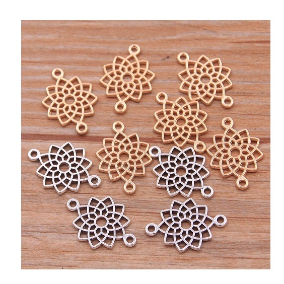 Kit Pingente Flor da Vida Entremeio Colares Pulseiras Conector Metal Prateado ou Dourado