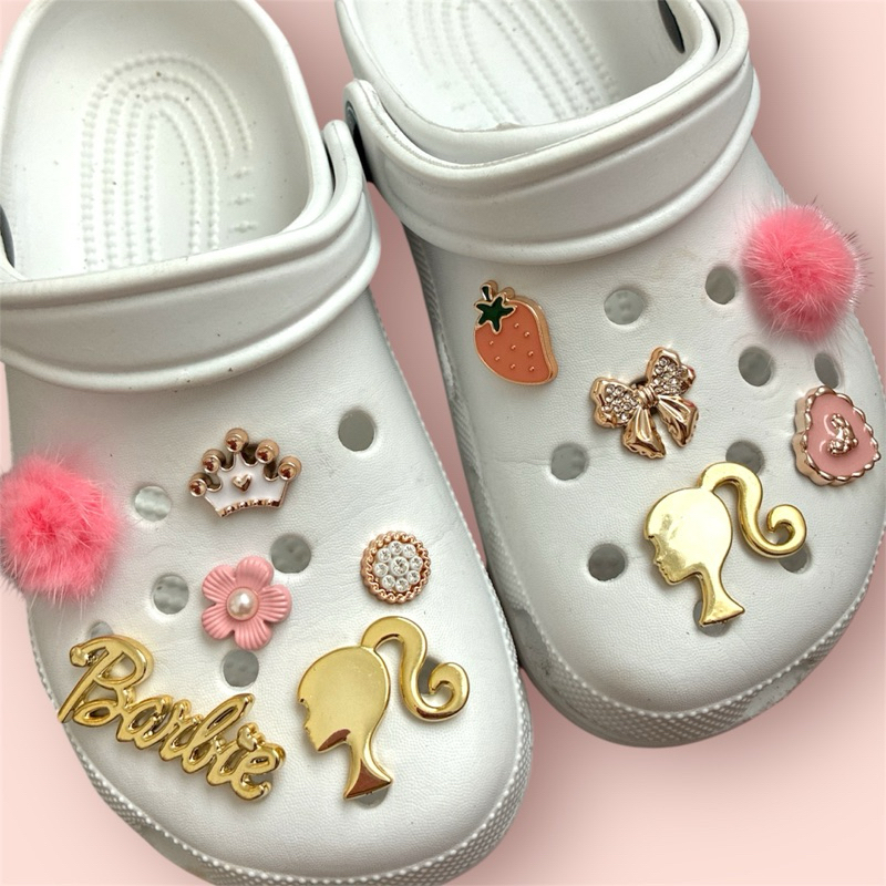 Kit pins para babuche rosa pompom dourado barbi laço pingente fofo