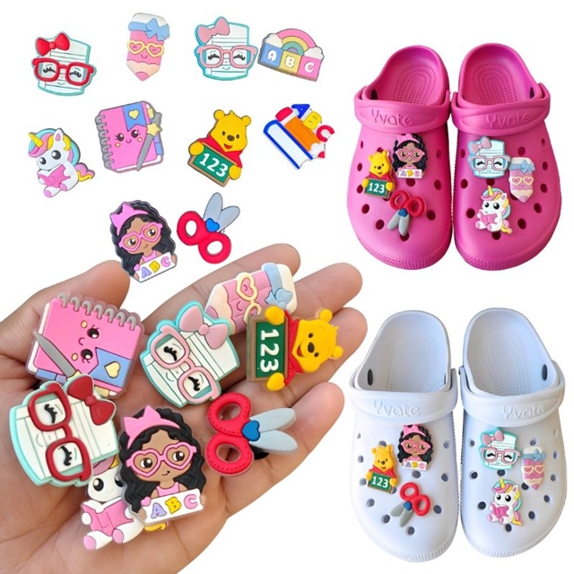 Kit Pins Professora Enfeites Letras Prof para Sandália babuche Pedagogia (Kit PROF)