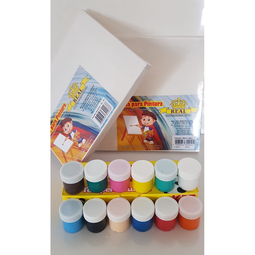 OLÁ, SEJA BEM VINDO 🌹😉 KIT PINTURA CONTÉM: 2 Telas de pintura 16x22 cm e mais 12 tintas guache Acrilex para usar a imaginação e criatividade. Tela branca 16x22 REAL SEDA grampeadas atrás, algodão branco resinado. Tinta guache escolar (2 caixas de 6 unidades ou 1 caixa com 12 unidades) conforme disponibilidade de estoque. Ideal para artesanato e atividade escolar. Use sua criatividade e comece a pintar!! BOAS COMPRAS 👍👏 ESTAMOS À DISPOSIÇÃO ✌ DEUS ABENÇOE 🙏😊 *Fotos meramente ilustrativas*