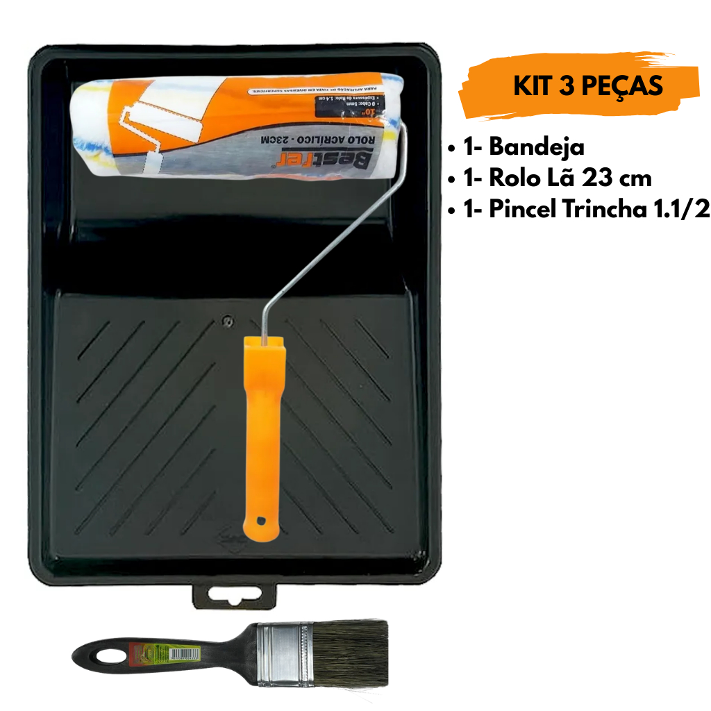 Kit Pintura Parede Rolo Lã Espuma Espátula e Pincel VÁRIAS OPÇÕES DE KIT O kit de pintura de paredes é perfeito para quem deseja renovar a decoração de sua casa de forma prática. Completo para Reformas e Acabamentos Descrição do Produto: Transforme sua pintura em uma tarefa prática e com acabamento profissional com o Kit de Pintura de Parede 6 Peças. Ideal para quem deseja pintar, reformar ou retocar paredes, móveis e superfícies, o kit reúne os acessórios essenciais para um trabalho mais rápido, organizado e eficiente. Opções de Kit Disponíveis com itens inclusos: Kit com 12 peças – Completo e ideal para grandes projetos 1- Bandeja / 1- Rolo Lã Sintética / 1- Rolo Espuma 9 cm / 1- Rolo Espuma 5 cm / 1- Pincel Trincha 2.1/2 / 1- Pincel / Trincha 1.1/2 / 1- Pincel Trincha 3/4 / 1- Fita Crepe / 1- Espátula 8 / 3- Lixas Kit com 7 peças – Ótima opção para pinturas médias 1- Bandeja / 1- Rolo Lã Sintética / 1- Rolo Espuma 9 cm / 1- Pincel Trincha 1.1/2 / 1- Fita Crepe / 2- Lixas Kit com 4 peças – Prático para reformas rápidas 1- Bandeja / 1- Rolo Lã Sintética / 1- Rolo Espuma 9 cm / 1- Pincel Trincha 1.1/2 Kit com 3 peças – Econômico, ideal para retoques e pequenos trabalhos 1- Bandeja / 1- Rolo Lã Sintética / 1- Pincel Trincha 1.1/2 Rolo de lã sintética – Para paredes e grandes superfícies Rolo de espuma – Ideal para esmaltes, vernizes e acabamentos finos Pincel – Para cantos, retoques e áreas de difícil acesso Espátula – Para aplicação de massa e correção de imperfeições Fita crepe – Protege áreas e garante bordas perfeitas Bandeja de pintura – Facilita o uso da tinta e evita desperdícios Vantagens: Kit completo e pronto para uso Acabamento mais limpo e uniforme Ideal para uso doméstico e profissional Fácil de manusear, até mesmo para iniciantes imagens ilustrativas, marcas podem ter alteração conforme disponibilidade de estoque.